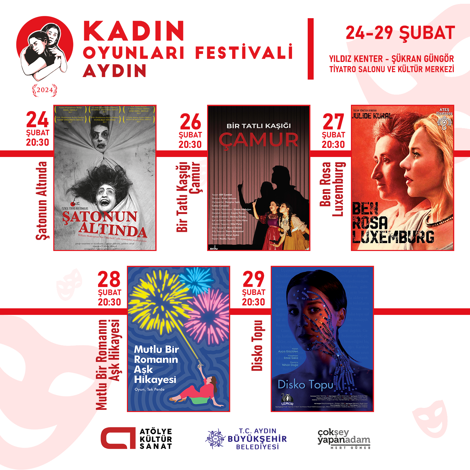 Kadın Oyunları Festivali, 24-29 Şubat 2024 tarihleri arasında Aydın Büyükşehir Belediyesi ev sahipliğinde Yıldız Kenter-Şükran Güngör Tiyatro Salonu ve Kültür Merkezi’nde gerçekleşti.