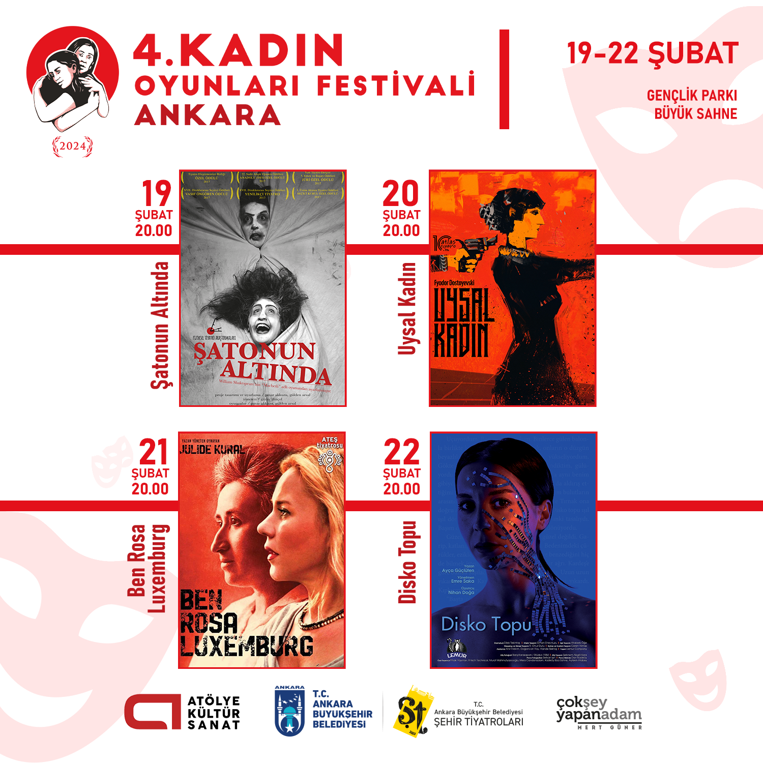 Kadın Oyunları Festivali, 19-22 Şubat 2024 tarihleri arasında Ankara Büyükşehir Belediyesi ev sahipliğinde Gençlik Parkı Büyük Sahne’de gerçekleşti.