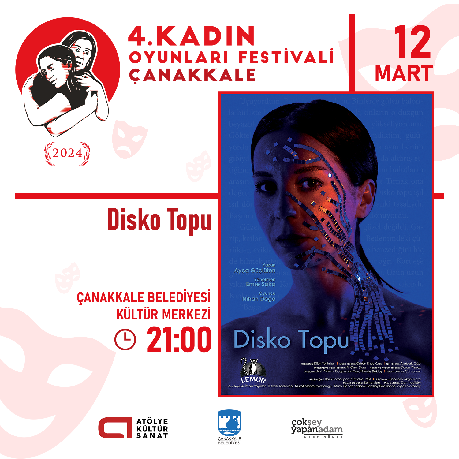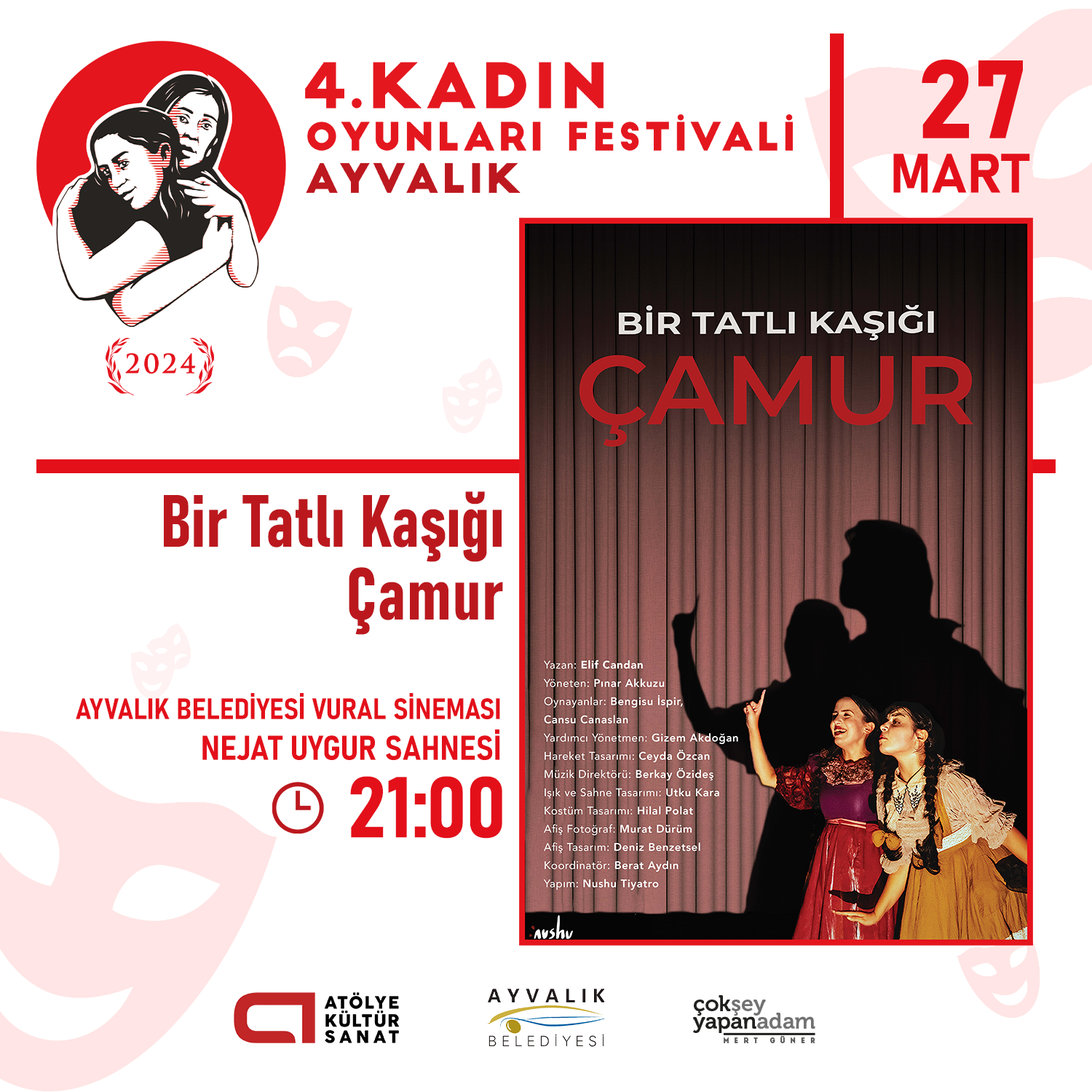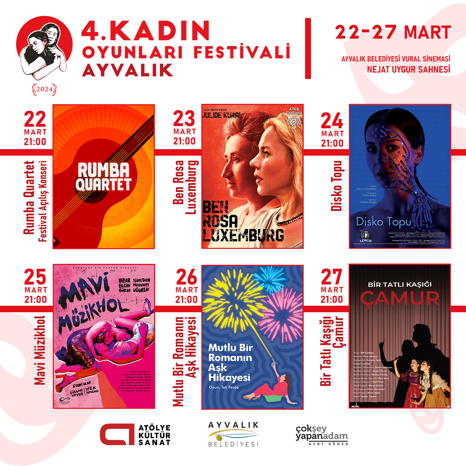 Kadın Oyunları Festivali, 22-27 Mart 2024 tarihleri arasında Ayvalık Belediyesi ev sahipliğinde Vural Sineması Nejat Uygur Sahnesi’nde gerçekleşti.