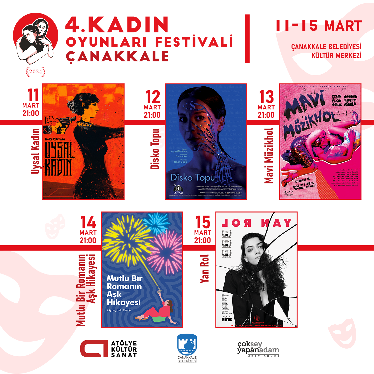Kadın Oyunları Festivali, 11-15 Mart 2024 tarihleri arasında Çanakkale Belediyesi ev sahipliğinde Çanakkale Belediyesi Kültür Merkezi’nde gerçekleşti.